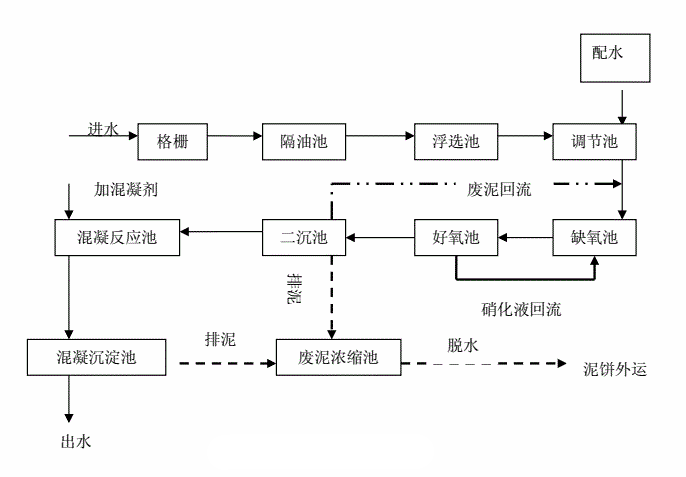 生物處理前的預處理方法通常是物理和化學方法,如氣浮法、吹脫法、混凝沉淀法、折點氯化法等,主要目的是使二級生化處理工藝的進水達到可生化處理的范圍。